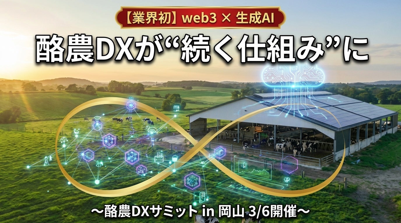 酪農コミュニティ「Metagri研究所」(運営:農情人、千葉県船橋市)は2026年3月6日、岡山県農業共済会館で開かれる「近畿・中国・四国地区 酪農DXサミット in 岡山」に登壇し、web3的なコミュニティ運営と生成AI活用を組み合わせた「生産者主体で継続できるDXの仕組み」を紹介します。来場できない方向けにアーカイブ視聴チケットも1,000円(税込)で販売します。