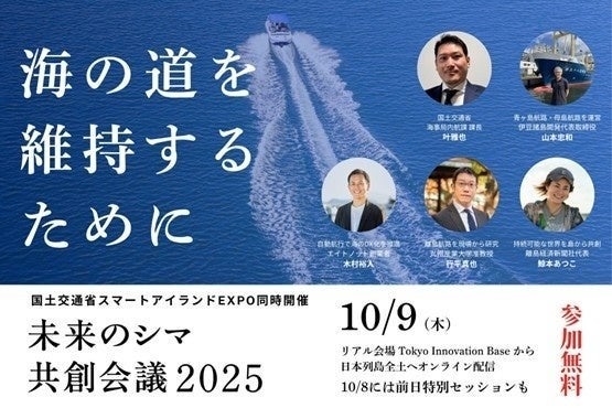 2025年10月9日、Tokyo Innovation Base(東京)で開かれた「未来のシマ共創会議2025」で、キャンパスクリエイトが協賛セッション「海の道を維持するために」を実施しました。会議の参加者はリアルとオンライン合計1,051人で、離島航路の維持に関心が集まりました。