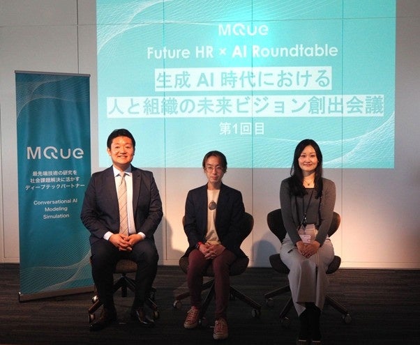 MQueは12月8日、生成AIと組織をテーマにした会合「Future HR × AI Roundtable」を丸紅本社(コミュニケーションラウンジ Oasis)で開催し、マックス・プランク人間開発研究所の矢倉大夢氏と丸紅の福永美華氏が登壇しました。丸紅は学生向けプログラムでAI面談を運用し、参加600人超のうち約95%が「自己理解や就活に役立つ」と回答しました。