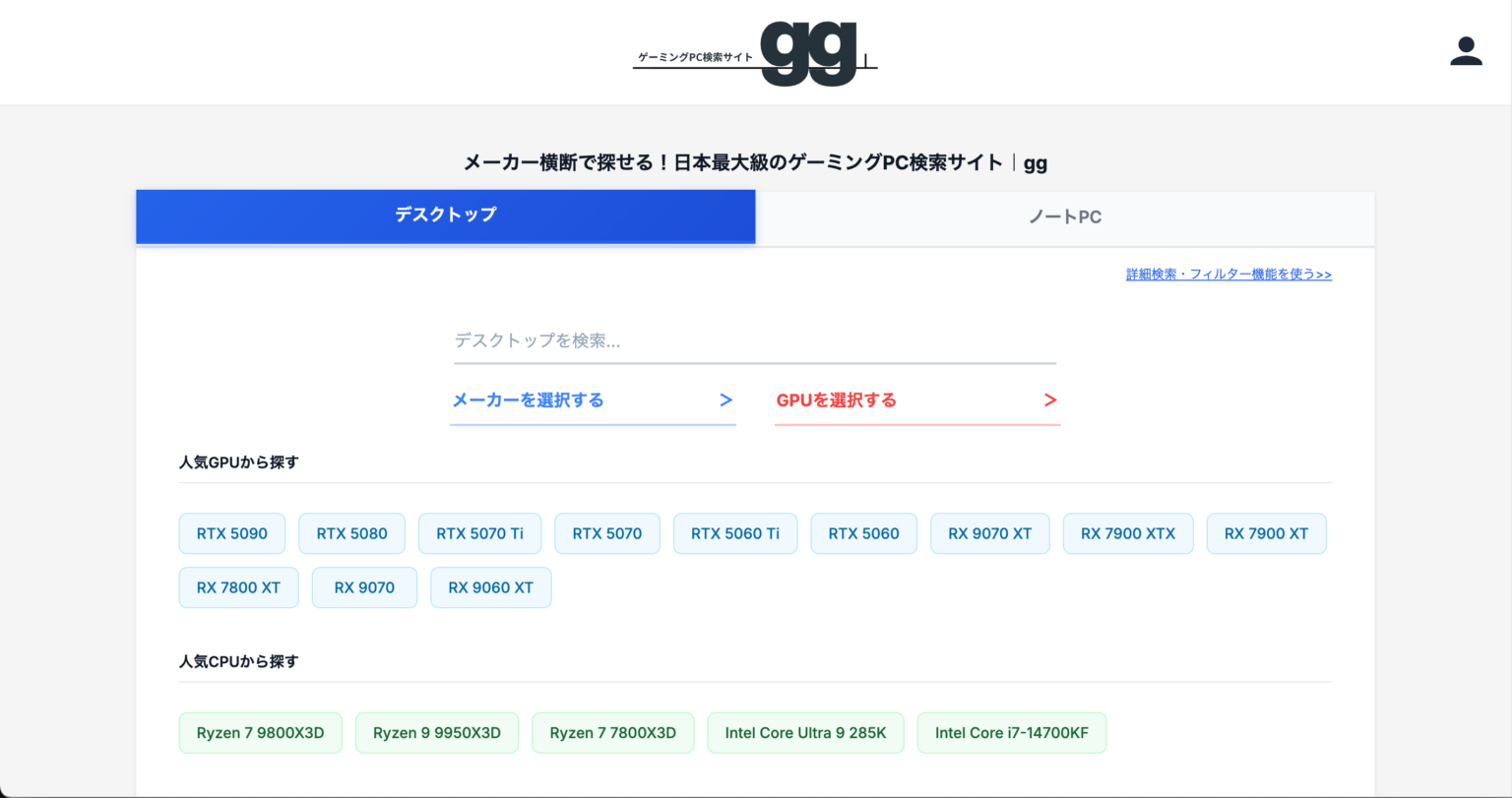 ゲーミングPC検索サイト「gg」 https://good-gamers.jp