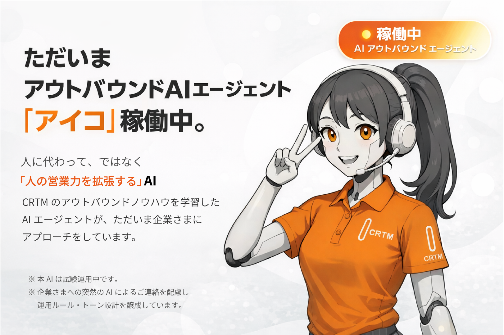 株式会社カスタマーリレーションテレマーケティング(CRTM)は2025年12月1日、AIエージェントがターゲット企業に直接架電して提案まで行う「ファーストコール」の実証運用を始めました。対象は製造業、IT・SaaS、コンサルティングなどのBtoB企業で、営業リソース不足の解消に向け、AIが接点創出を担い人が商談化を担う分業モデルの有効性を検証します。