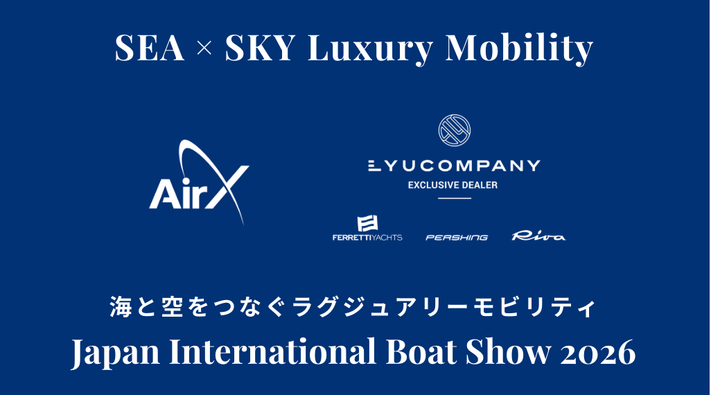 株式会社AirX(東京都千代田区)は、LYUCOMPANYと共同で「ジャパンインターナショナルボートショー2026」(会期:2026年3月19日〜22日)に出展し、パシフィコ横浜のLYUCOMPANY展示ブース内でヘリコプターを活用した空の移動サービスを展示します。