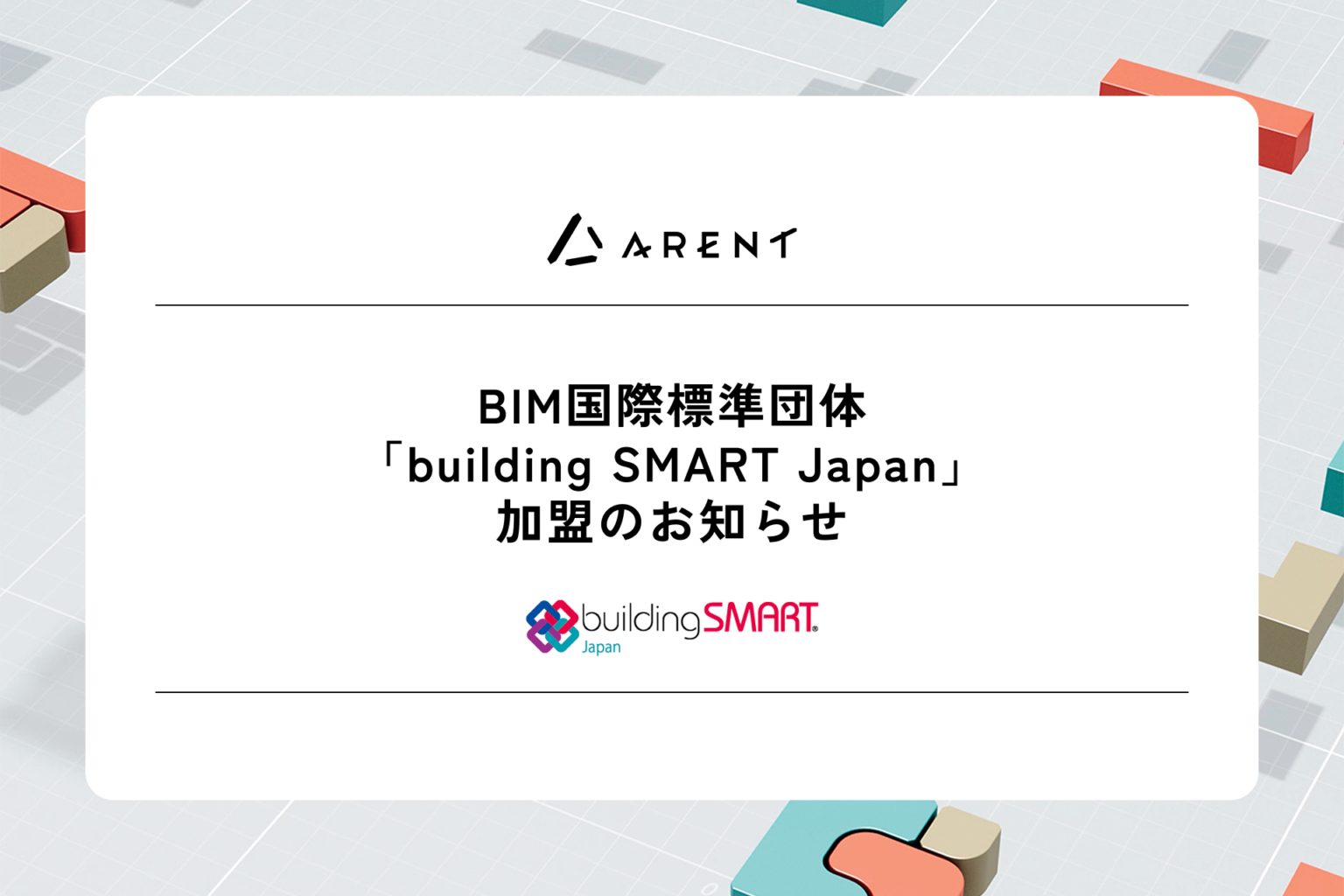 建設業界向けDX支援を行う株式会社Arent(東京都港区)は、BIM国際標準団体の日本支部である一般社団法人buildingSMART Japan(bSJ)に加盟しました。bSJはBIMデータ標準「IFC」の普及や行政との連携を担う組織で、国内の建設DX推進の中核的な役割を持ちます。