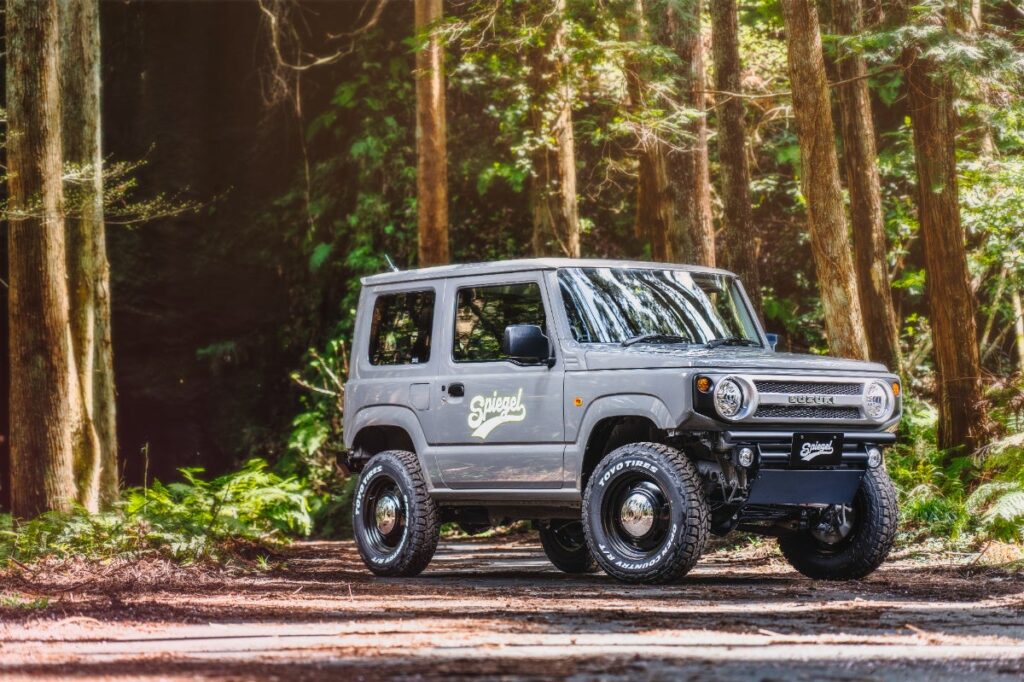 外装のアクセントとして、ジムニーのイラスト入りスペアタイヤカバー(カーキ)も採用しています。対象はジムニー/ジムニーシエラのカスタムに関心のある層で、オフロードだけでなくストリート映えも意識した構成です。