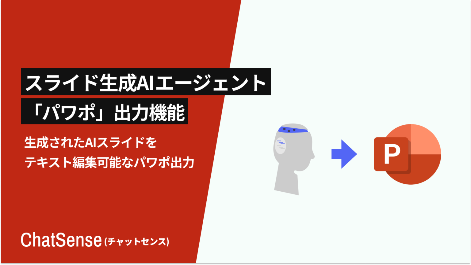 株式会社ナレッジセンス(東京都港区)は2026年1月20日、法人向け生成AIサービス「ChatSense」のスライド生成機能で、PowerPoint(.pptx)形式の出力に対応したと明らかにしました。従来は画像やPDFでの閲覧が中心でしたが、pptxでダウンロードでき、作成後の編集まで想定した運用が可能になります。機能はスライド生成を利用する全プランで追加料金なしです。今回の特徴は、単なる画像貼り付けではなく、テキストや構成要素をPowerPoint上で編集可能な「オブジェクト」として書き出す点です。これにより、文言の修正、誤字訂正、文字サイズの調整、レイアウトの微調整などをPowerPoint側で行えます。社内資料や議事録などのテキストを読み込ませ、短時間でプレゼン資料を作る用途を想定しており、テーマ選択機能と組み合わせてデザインスタイルを選んだまま持ち出せるとしています。今後は、出力精度の向上やテンプレート拡充が進めば、資料作成の内製化と作業時間の削減が一段と進む可能性があります。