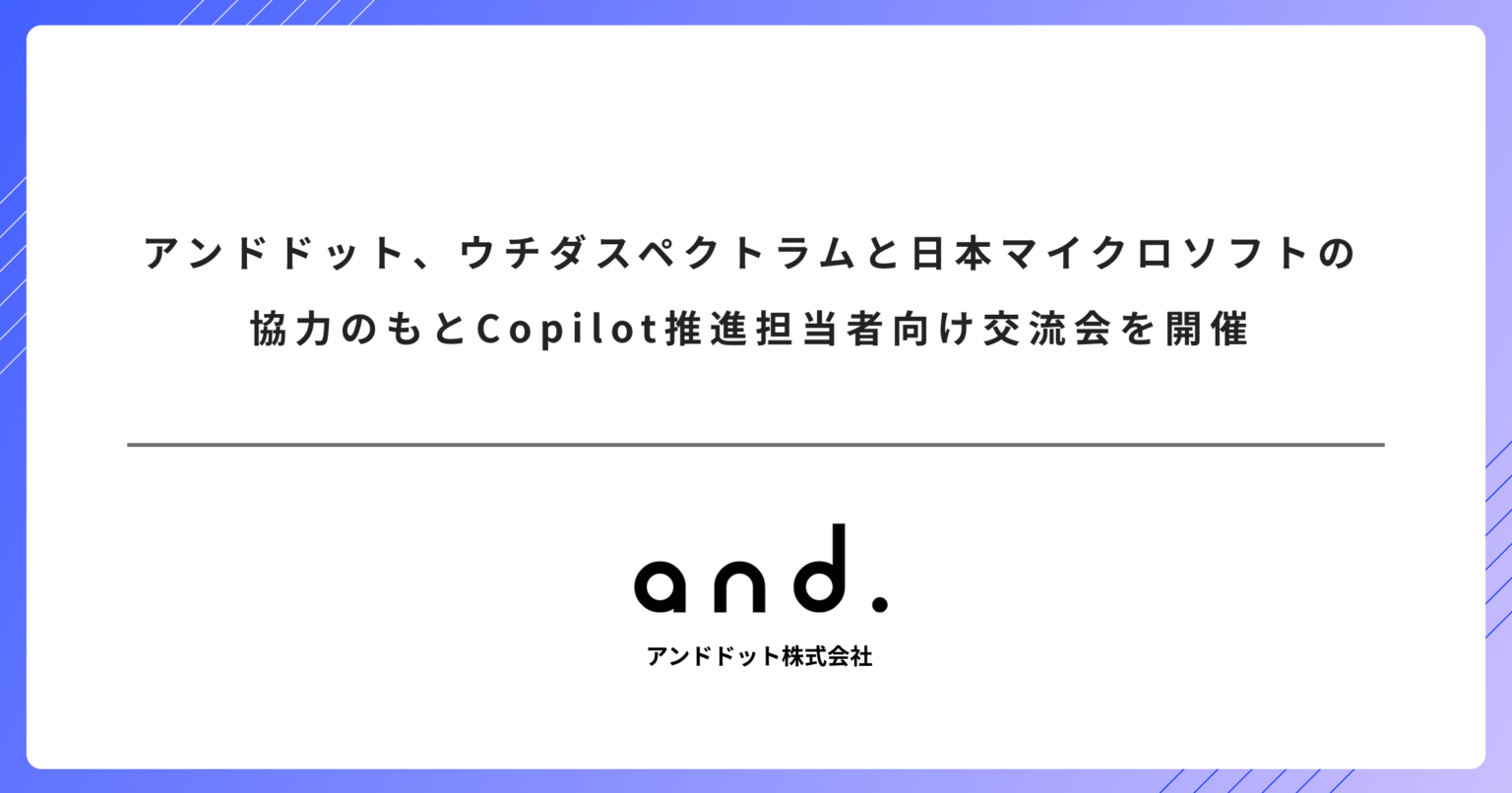 アンドドットは12月、ウチダスペクトラムと日本マイクロソフトの協力のもと、Microsoft 365 Copilotの社内活用を推進する担当者向け交流会を日本マイクロソフト本社で開き、エンタープライズ企業を中心に9社が参加しました。参加者アンケートの平均満足度は5点満点で4.3でした。