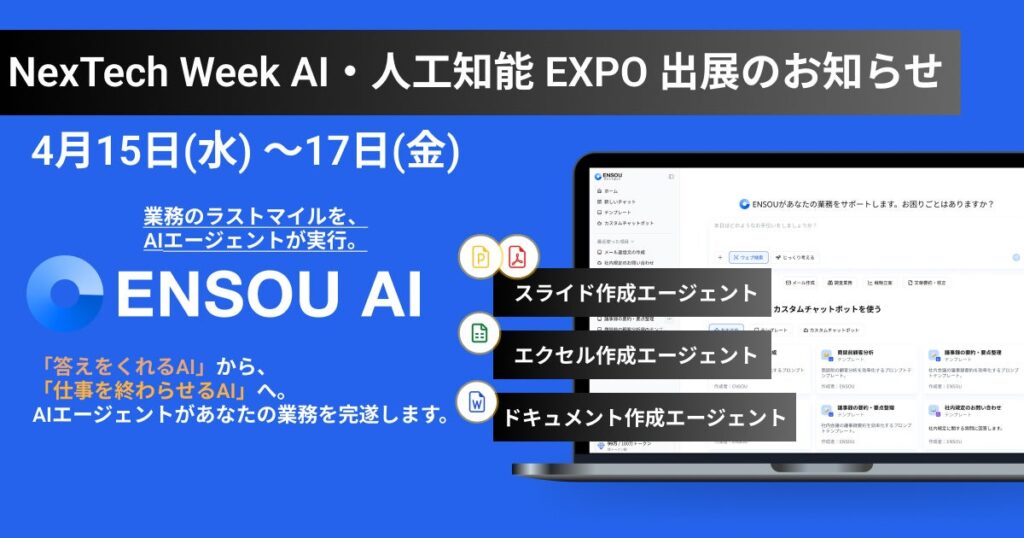 業務完遂型AIエージェントのENSOU AI、日本最大級「第10回 AI・人工知能 EXPO【春】」に出展