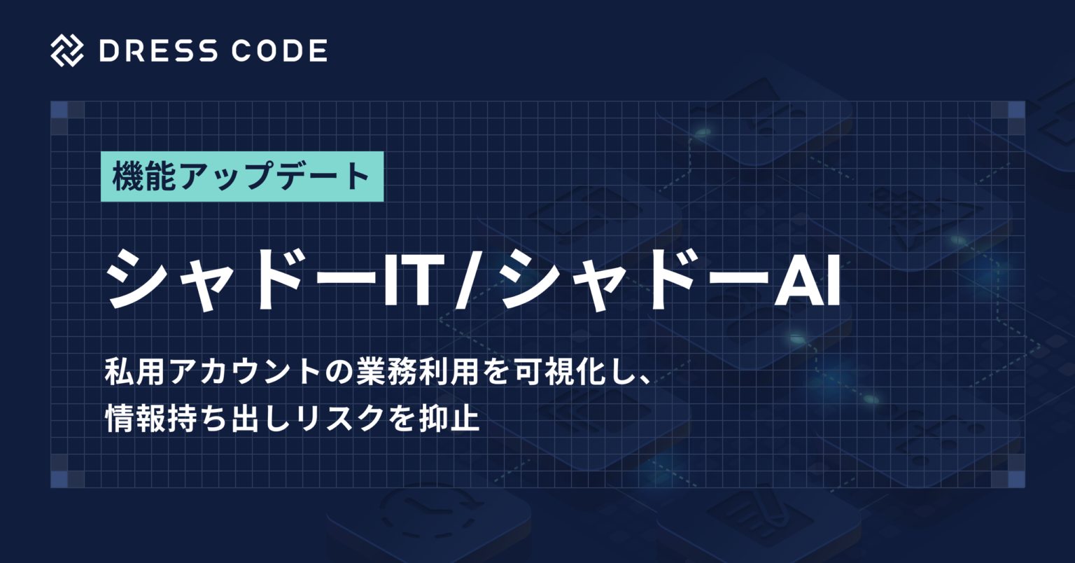 Dress Code(東京都中央区)は2026年3月12日、DRESS CODE「IT Force」シリーズの「シャドーIT/シャドーAI」機能を更新し、WebサービスやAIサービスへのログイン時に使われた私用メールアドレスの検知に対応しました。未登録IDでのログインを自動で見つけ、従業員単位で把握できます。
