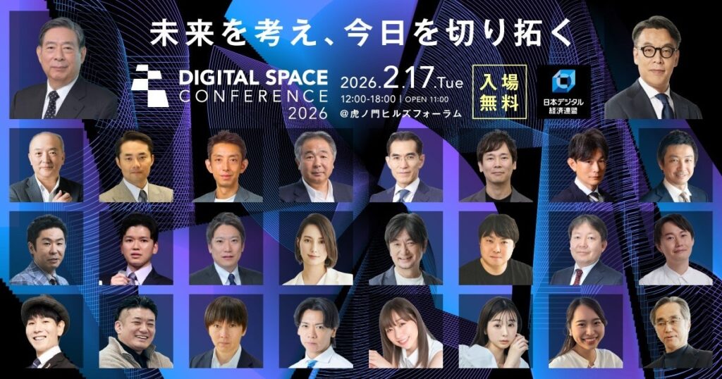日本デジタル経済連盟は2026年2月17日、カンファレンス「Digital Space Conference 2026(DSC2026)」を虎ノ門ヒルズフォーラム(東京都港区)で開きます。会場では基調講演や各種セッションに加え、展示ブースは全13社が出展します。