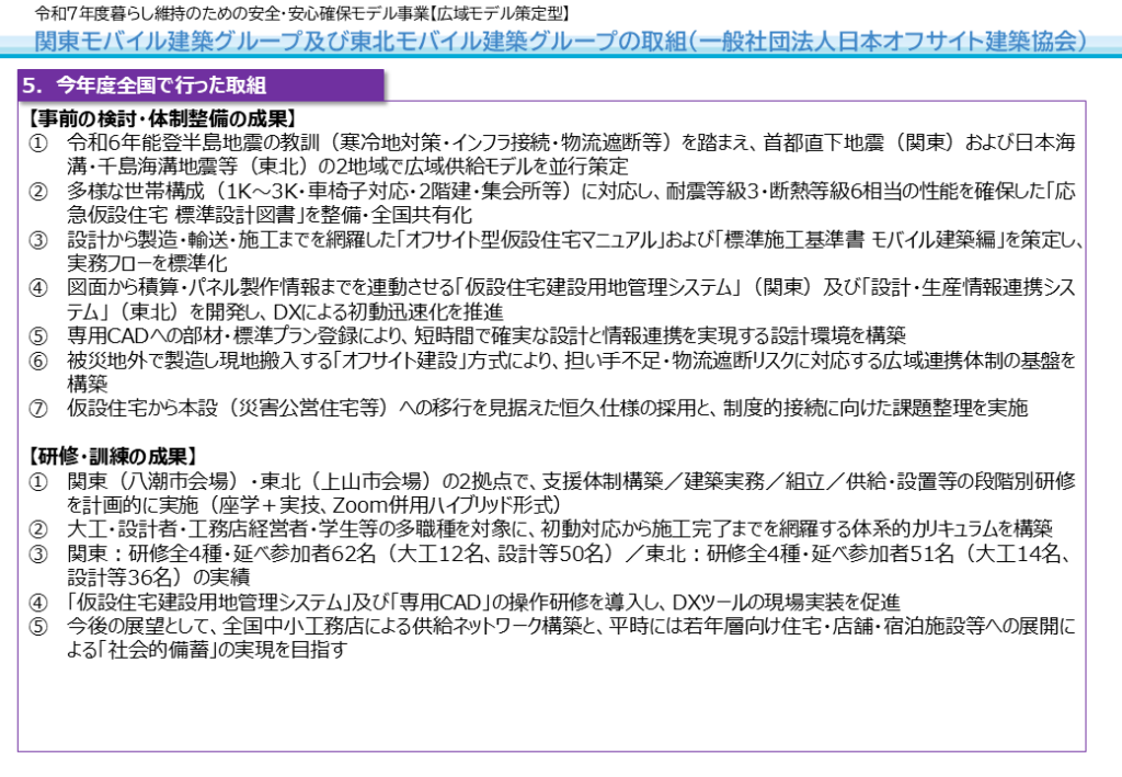 【国交省モデル事業】DXによる「広域供給ネットワーク」と「動く復興住宅」を実証。日本オフサイト建築協会が国難級災害に備える取り組み成果を発表