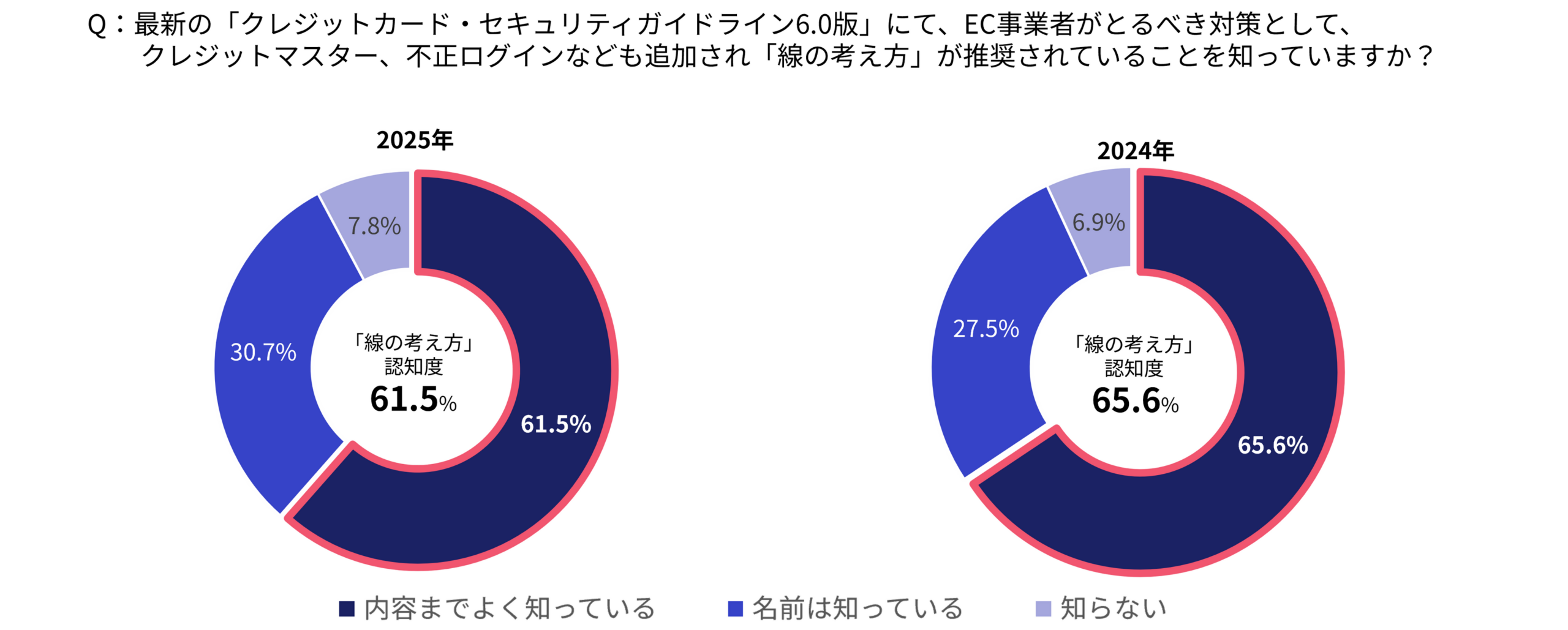 不正ログイン被害は56.2%が経験し、年商10億円以上では64.2%に上りました。発覚は「通常と異なる挙動」52.1%が最多で、顧客からの問い合わせ46.0%も多く、事業者・利用者の双方が異常を感知している実態です。不正注文の被害経験率は38.0%で高止まりし、内訳ではクレカ不正利用が63.8%を占めました。対策は不正ログイン対策の未実施が3.3%にとどまり、不正注文対策は69.6%、うちEMV3-Dセキュア導入は65.2%でした。