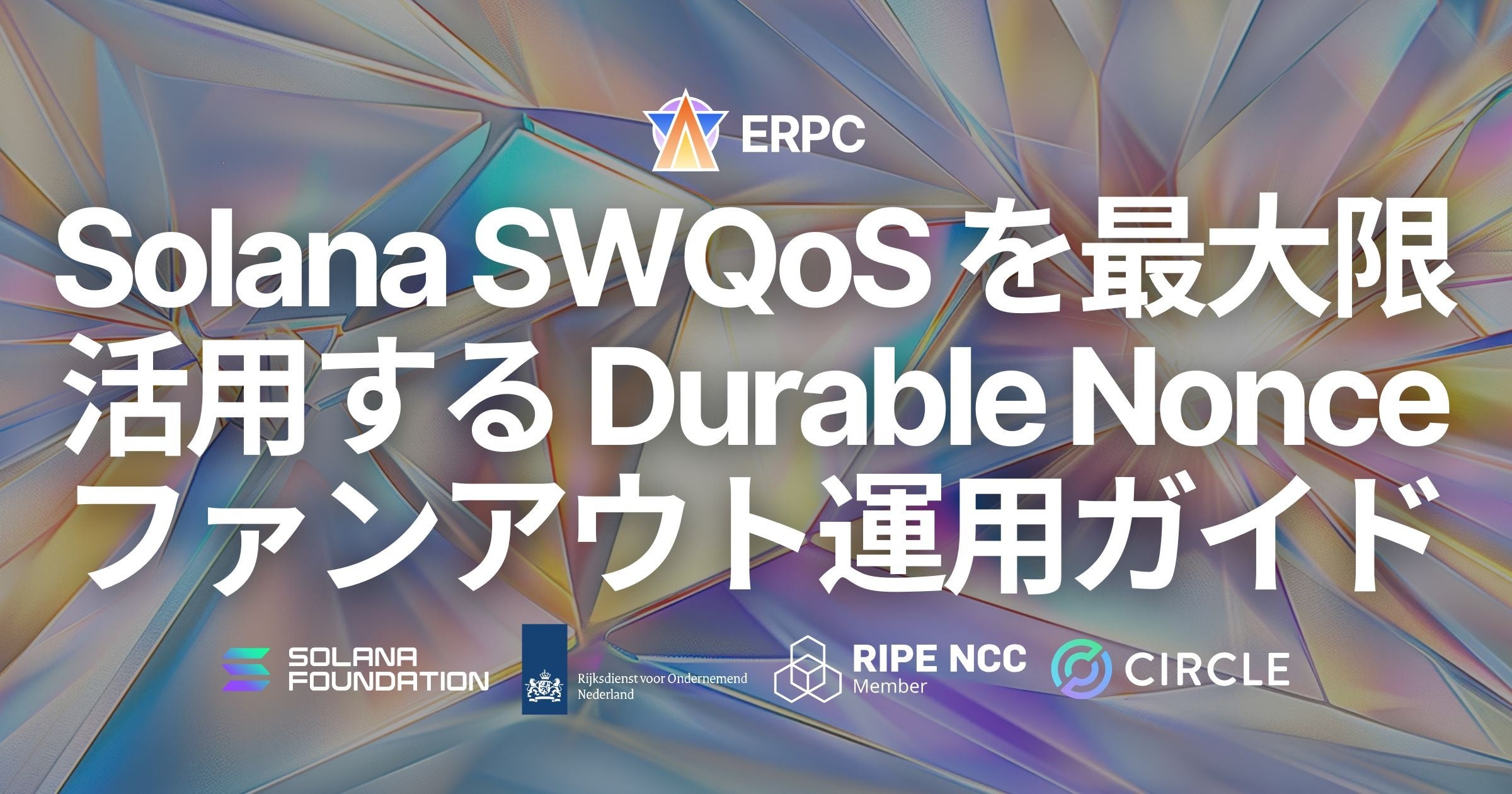 ERPCは、Solanaでトランザクション送信の成功率とレイテンシ改善を狙い、SWQoS(Stake weighted Quality of Service)を軸に複数RPCへ同一トランザクションを同時送信する「Durable Nonceファンアウト運用ガイド」を公開しました。優先帯域は80%、非優先帯域は20%とされ、優先レーン投入が可能なSWQoSを前提に設計しています。Solanaはスロット進行やリーダー配置、経路・負荷が変動し最速経路を固定しにくく、単一RPC依存は遅延や失敗の要因になり得ます。一方、ファンアウトは二重実行リスクがあるため、ガイドでは公式機構Durable Nonceを使い、recentBlockhashの代わりにnonce値で「実行は1回」を担保する手順を整理しました。nonce account設計、nonceAdvanceの命令順、複数エンドポイントへの並列送信、confirm設計、次回送信への遷移までをweb3.js例付きで解説しています。今後は運用知見を基に、送信基盤の改善とガイド更新を継続するとしています。