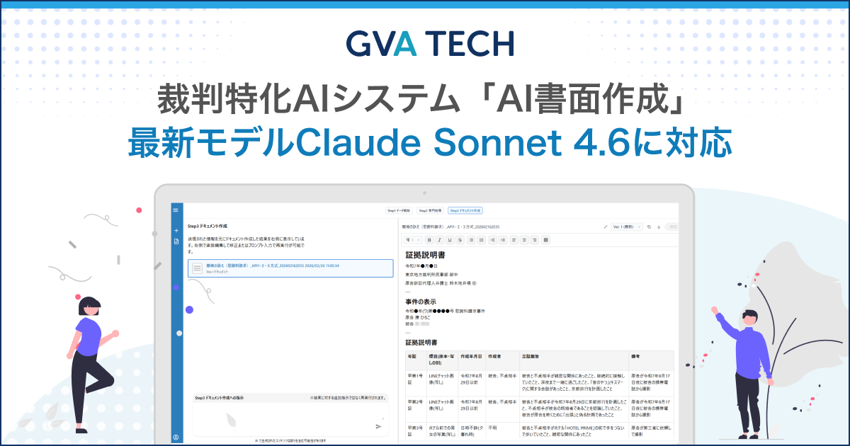 GVA TECH、裁判特化AIシステム「AI書面作成」が最新モデルClaude Sonnet 4.6に対応