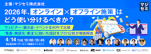 申込者全員にはアーカイブ動画が提供される予定で、オンライン/オフライン施策のKPI設計や、商談転換の仕組みづくりに関する知見共有が進む見込みです。