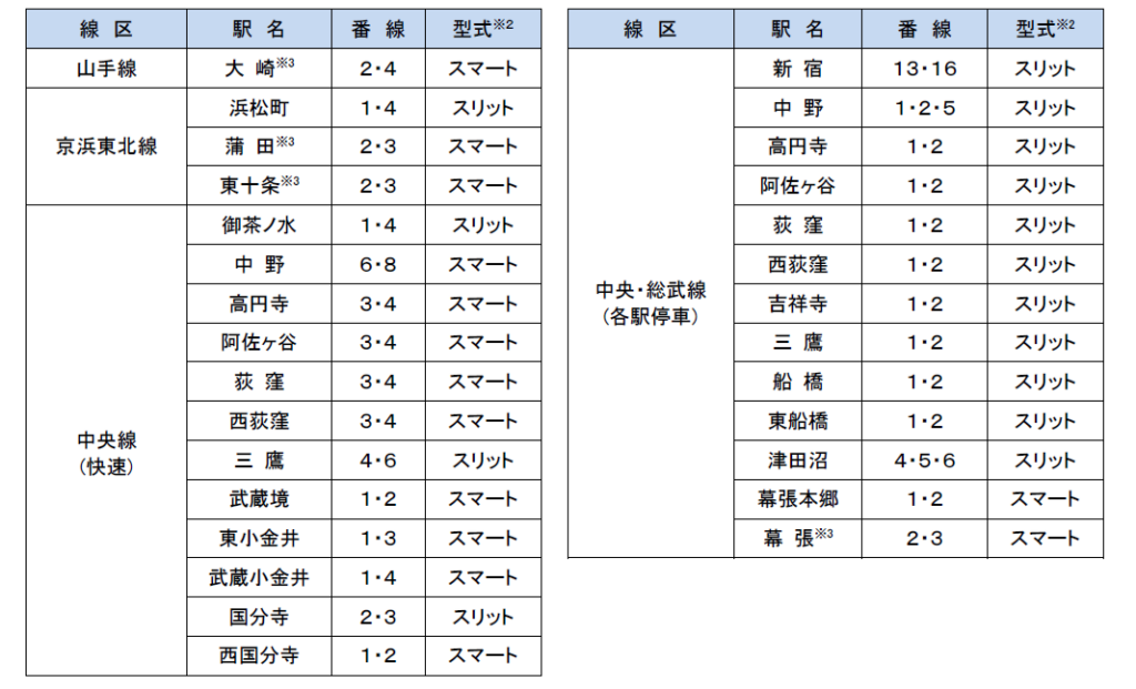 同社は2031年度末頃までに、東京圏在来線の主要路線で330駅758番線への導入を目標に掲げています。ホームドアはホームからの転落を物理的に防ぐ設備で、混雑しやすい都市部の駅で効果が見込まれます。