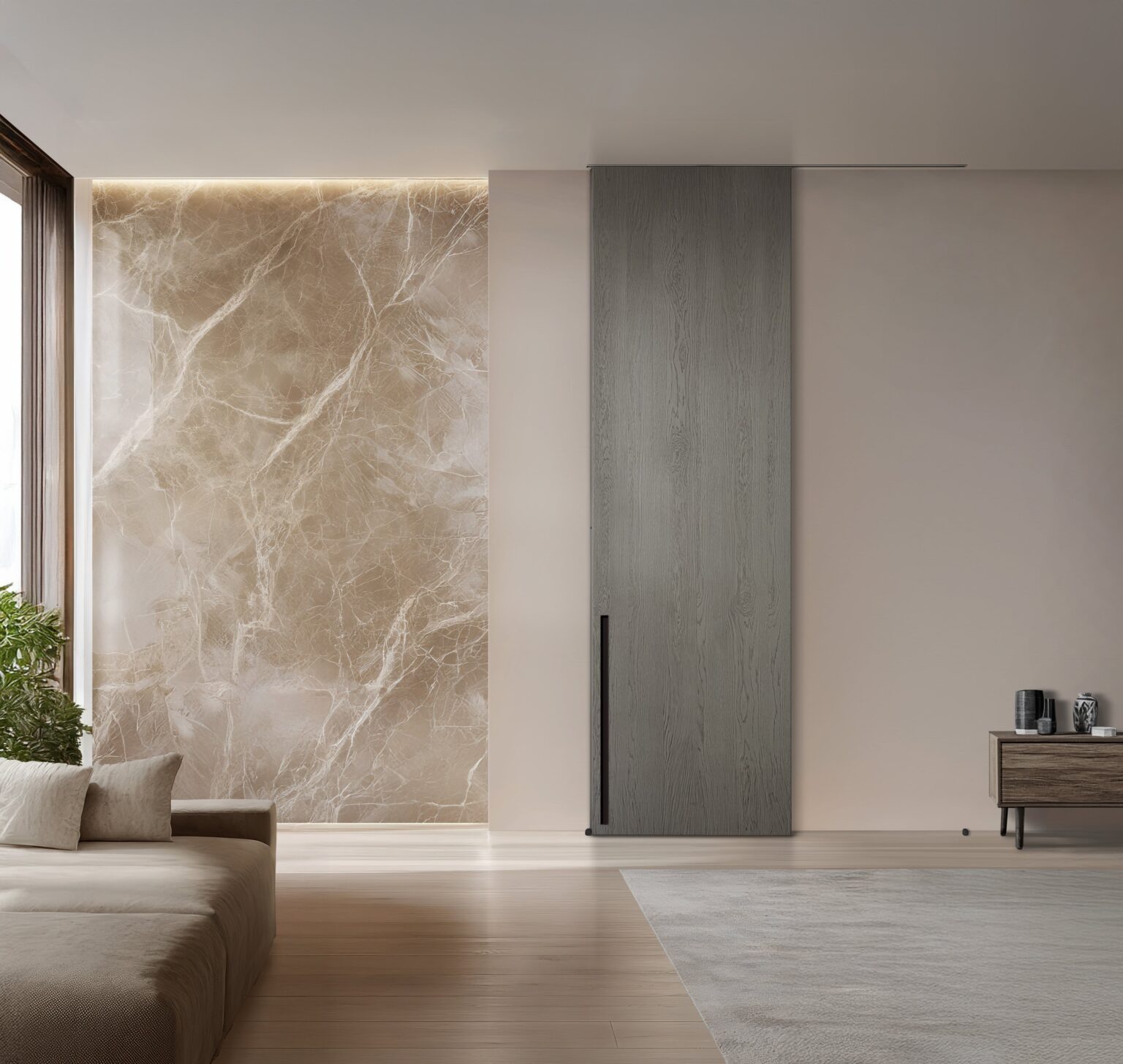 また、高さ3mの室内ドアも取り上げます。メーカー規格品としては国内最大の高さとしています。フルハイトドアは床から天井までの高さを生かし、枠を目立たせず空間を一体に見せる設計が特徴です。