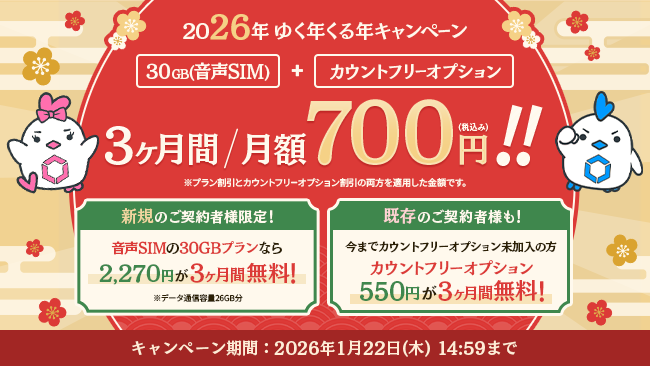 MVNO「LinksMate」は、音声通話+SMS+データ通信の30GB以上プランを新規契約し、同時にカウントフリーオプションへ加入すると、3カ月間の月額料金が税込700円になる割引を始めました。対象は2025年12月18日から2026年1月22日14:59までに契約完了(決済含む)した利用者です。割引は①30GB以上プランで「26GB分の料金」を3カ月無料にする措置と、②カウントフリーオプションを初めて加入する場合に同オプション料金を3カ月無料にする措置を組み合わせたものです。カウントフリーはゲームやSNSなど対象サービスの通信量を90%以上減算する仕組みで、データ消費の実質負担を下げる狙いがあります。年末年始の需要期に、ヘビーユーザーの取り込みが進むかが焦点となりそうです。