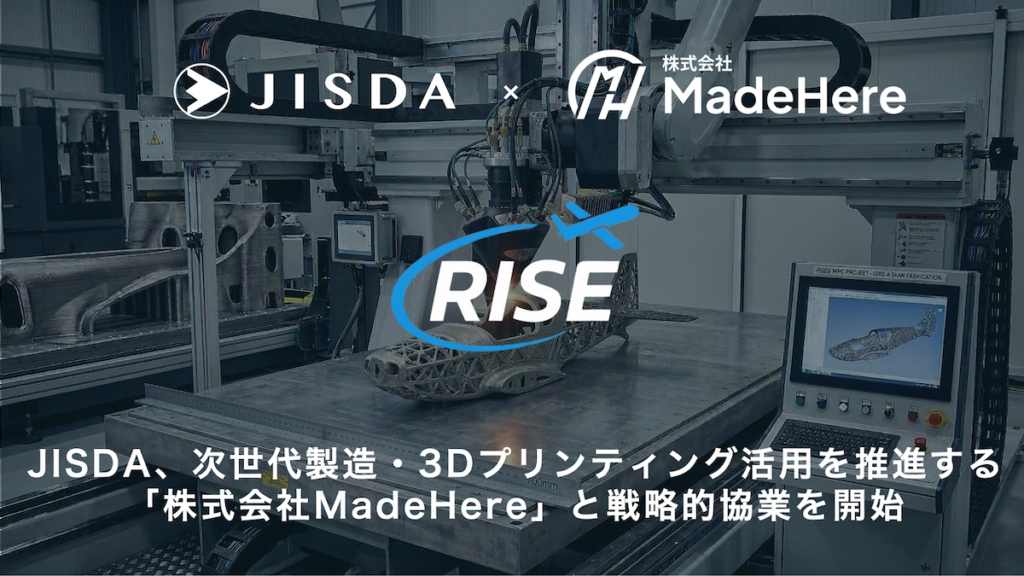 株式会社MadeHere(2016年2月設立)は2026年3月19日、無人アセットコンソーシアム「RISE」に参画し、JISDA(東京都千代田区、2025年11月設立)と無人機製造での3Dプリンティング活用やデジタル開発、供給網強化に向けた連携を始めました。