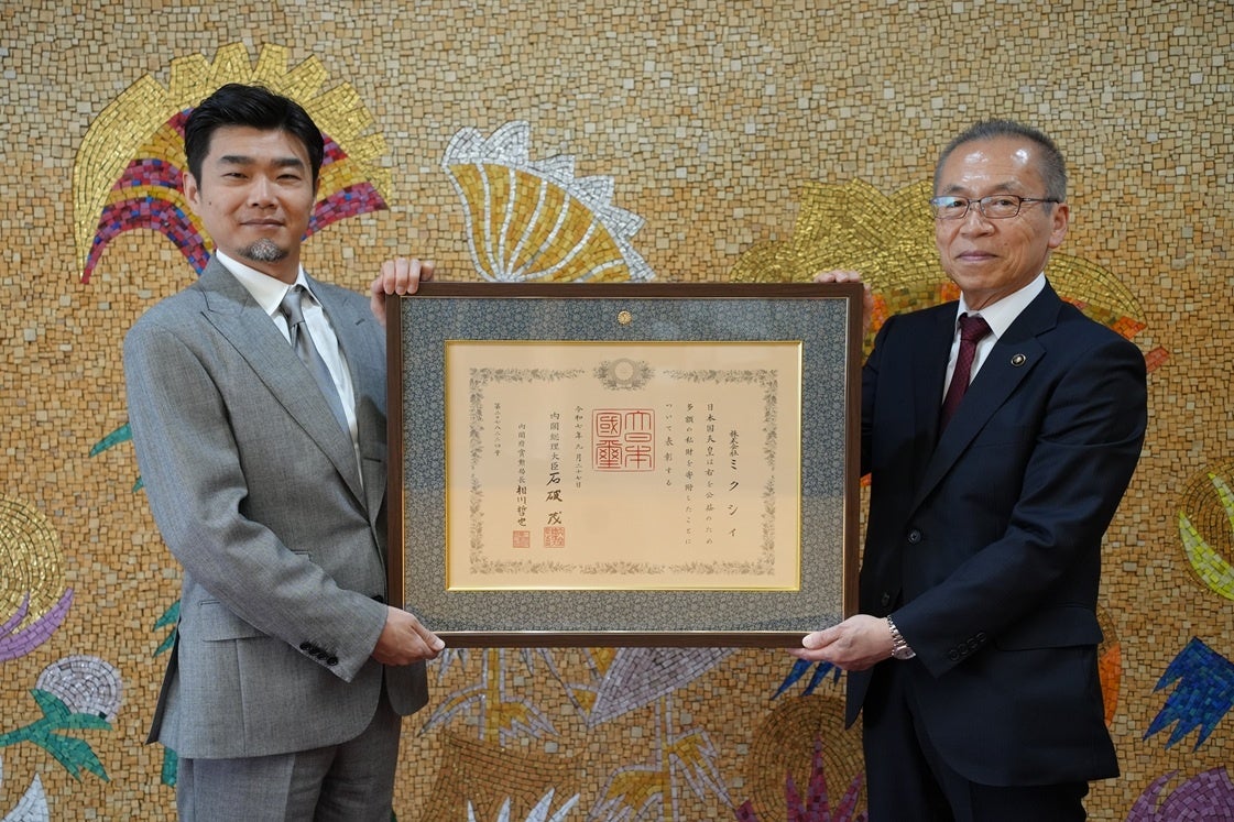 株式会社MIXIは、千葉県船橋市に対する2024年度の企業版ふるさと納税制度を通じた寄附により、紺綬褒章を受章しました。2026年3月23日16時00分に船橋市役所で伝達式が行われ、市長の松戸徹氏らが出席しました。