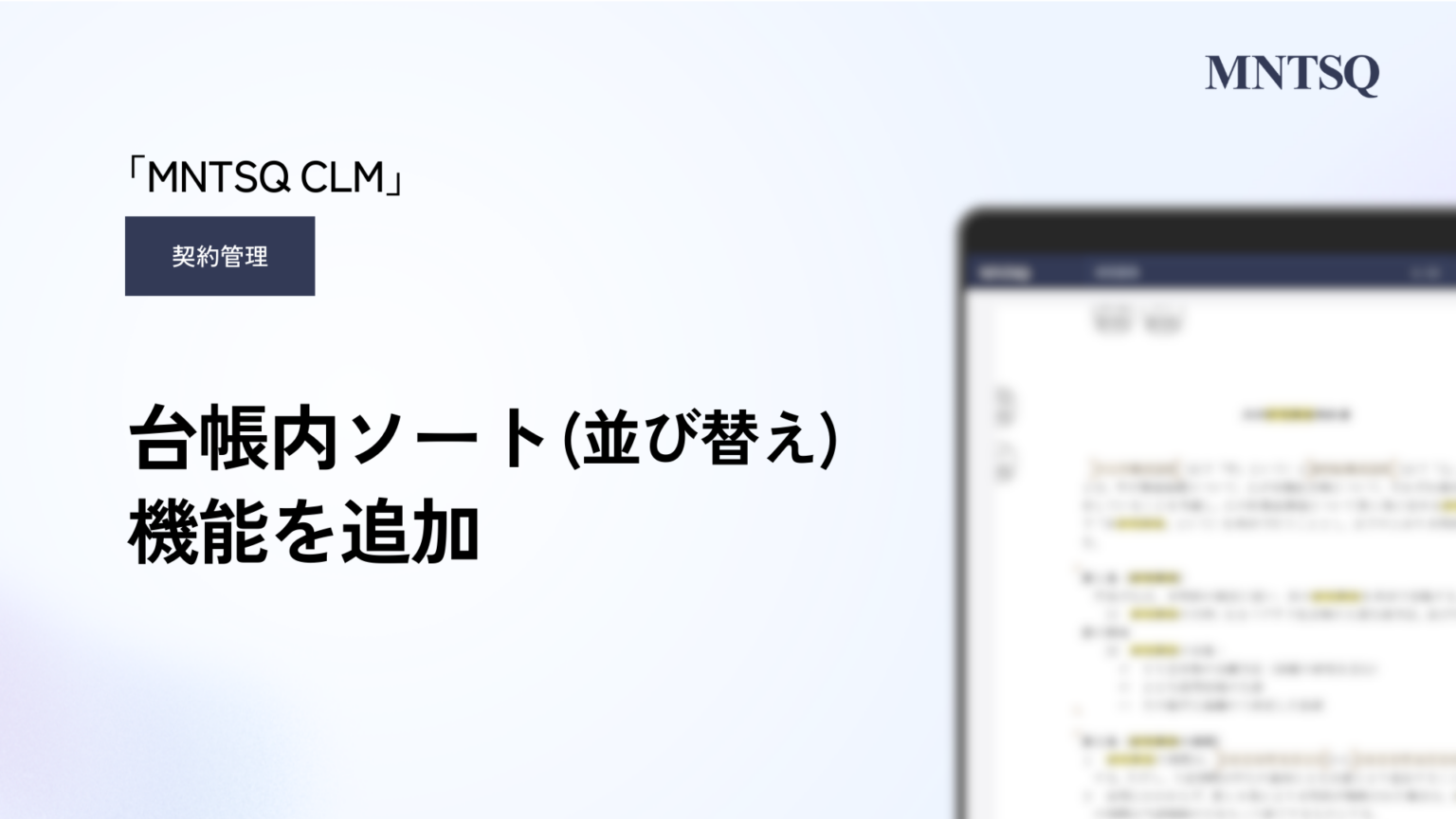 MNTSQ(東京都中央区)は2026年3月26日、「MNTSQ CLM」の契約管理機能で、台帳内および台帳横断検索画面のソート(並び替え)機能、検索・ソート状態の保存、エクスポートファイルへのソート順反映を追加しました。大量の契約台帳を扱う際の視認性向上と作業時間の削減を狙います。