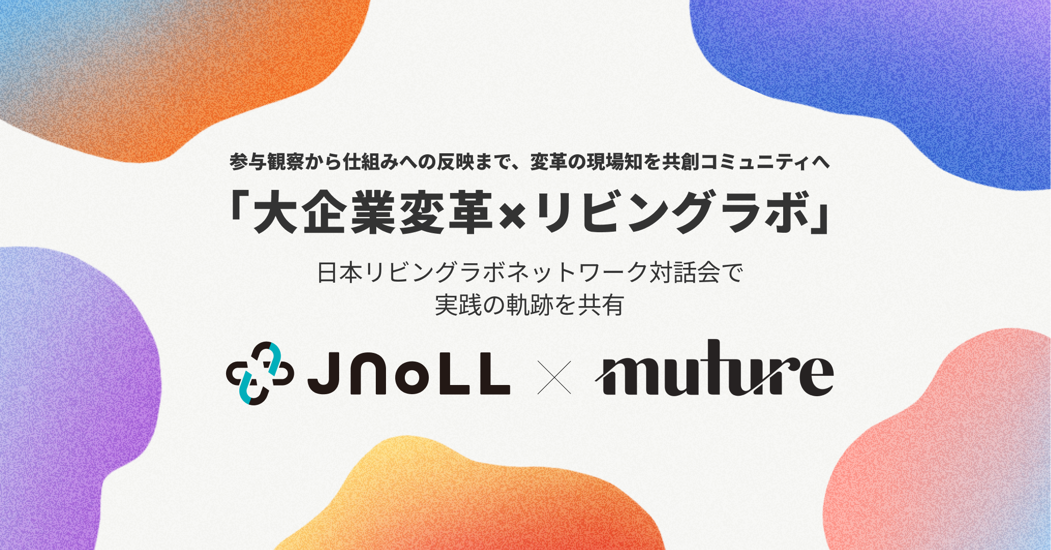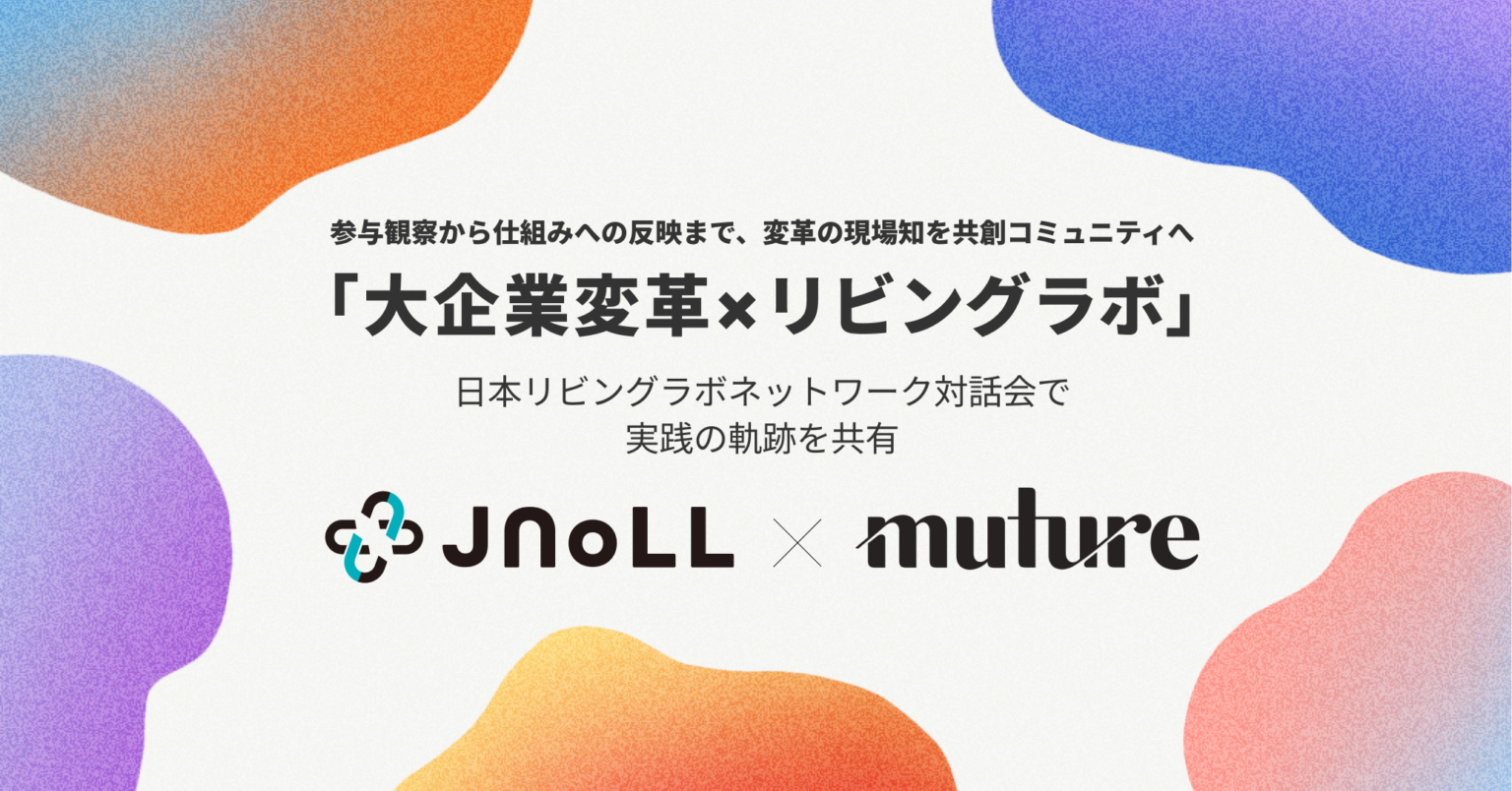 株式会社Muture(東京都中野区)の代表取締役・莇大介氏が、2026年3月11日(水)18:00〜20:00に開かれる一般社団法人日本リビングラボネットワーク(JNoLL)の対話会で、「大企業変革×リビングラボ」をテーマに話題提供します。丸井グループの企業変革に取り組んだ経験をもとに、現場で得た知見を共有します。