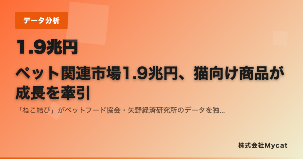 株式会社Mycat(東京都目黒区)は2026年3月26日、「ねこ結び」で全国ブリーダーマップ検索ツールを公開し、PDF「全国ブリーダー実態レポート 2026」の無料ダウンロード提供を始めました。年間の猫の新規飼育数は35.9万頭とされます。