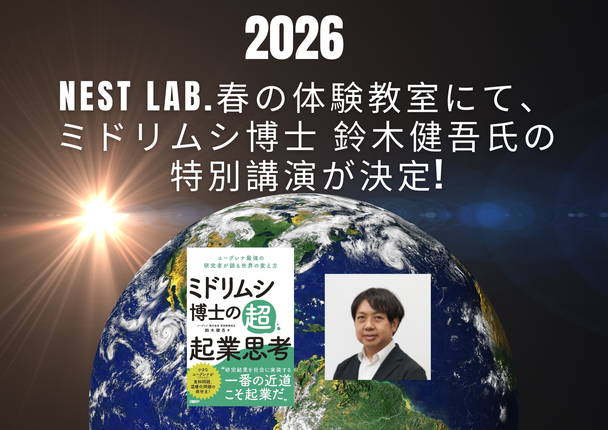 NEST LAB.春の体験教室にて、ミドリムシ博士 鈴木健吾氏の特別講演が決定
