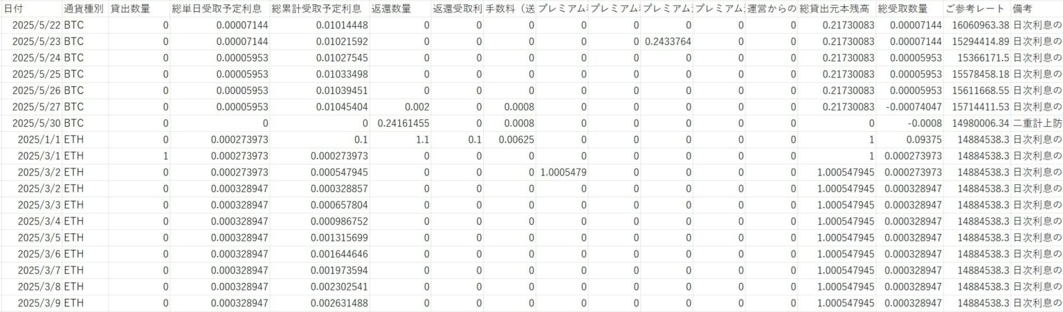 ダウンロード対象は「総貸出元本残高履歴」「レンディング申込・解約履歴」「貸出・返還数量履歴」「利息付与履歴」「総受取数量」「手数料履歴」などで、資産管理や取引記録の整理を効率化する狙いです。確定申告や会計処理で必要になるデータの整形負担を減らし、利用者が記録を追いやすい状態にします。