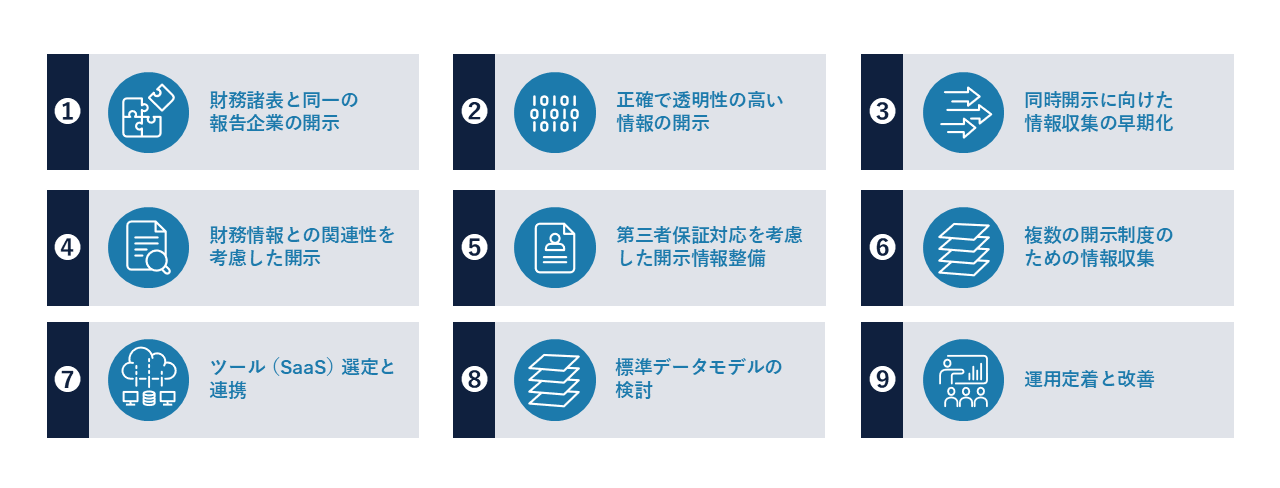提供内容は、SSBJ/CSRD等に基づくマテリアリティ評価やKPI整備、推進体制とRACI設計などのガバナンス構築、収集・検証・報告プロセス設計とSOP整備、監査人連携を含む第三者保証対応の統制要件まで含みます。さらに現行システムの把握からアーキテクチャ検討、ESGデータ管理SaaS選定、DWH/データレイクやETL/ELT、ダッシュボード構築、ERP連携、AIによる異常検知や自動算定、PoCから本番までの段階導入を支援します。短期では1~3か月で着手できる個別メニューも用意しました。今後、各国制度の更新が続く中、開示と保証の実務を回せる横断体制とデータ基盤整備の重要性が一段と高まる見通しです。