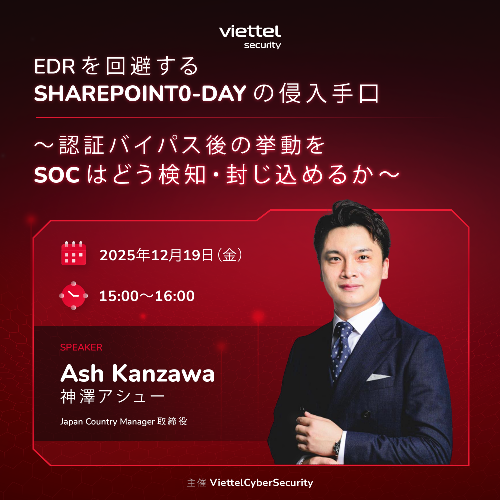 Viettel Cyber Security(VCS)は12月19日15時から、マジセミ主催のオンラインウェビナーで、SharePointを標的にしたゼロデイ(未修正の脆弱性)攻撃とSOCの防衛戦略を解説します。日本国内では外部公開されたSharePointサーバーが2,900台以上稼働しているとし、リスクの高まりを示しました。内容は、認証バイパス後にEDR回避を狙う侵入手口や、横展開(ラテラルムーブメント)の流れを扱い、シグネチャ型製品で見逃しがちな挙動を振る舞い分析で可視化し、早期検知・封じ込めする方法を説明します。題材として、SharePoint 2016/2019(オンプレ)に影響し、認証なしでRCE(遠隔コード実行)を可能にする「ToolShell」0デイにも触れます。参加費は無料で事前登録制。企業のSOC担当者やIT管理者、SharePoint設計担当者に向け、短期・長期の実践的フレームワークを提示し、運用高度化につなげる構成です。今後、SharePointを含む業務基盤への攻撃増加が見込まれる中、監視と初動対応の手順整備が焦点となりそうです。