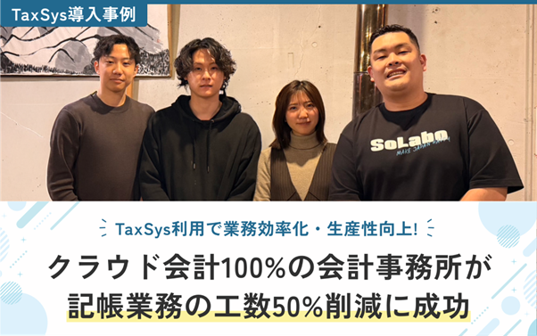 株式会社SoLabo(東京都渋谷区)は2026年3月13日、会計事務所向け業務効率化ツール「TaxSys(タクシス)」を導入したSoNiC会計事務所の事例を公開しました。導入により、同事務所の記帳業務の工数は導入前比で約50%削減したとしています。