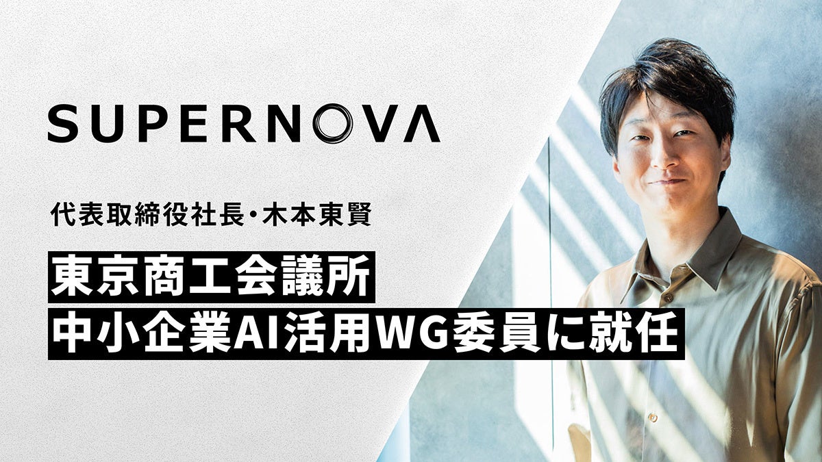 株式会社SUPERNOVA(東京都港区)の代表取締役社長・木本東賢氏が2026年2月27日、東京商工会議所の「中小企業のデジタルシフト・DX推進委員会」内に新設された「中小企業のAI・生成AI活用に関するワーキンググループ(本WG)」の委員に就任しました。SUPERNOVAは2024年1月11日設立で、資本金は2億4350万円です。