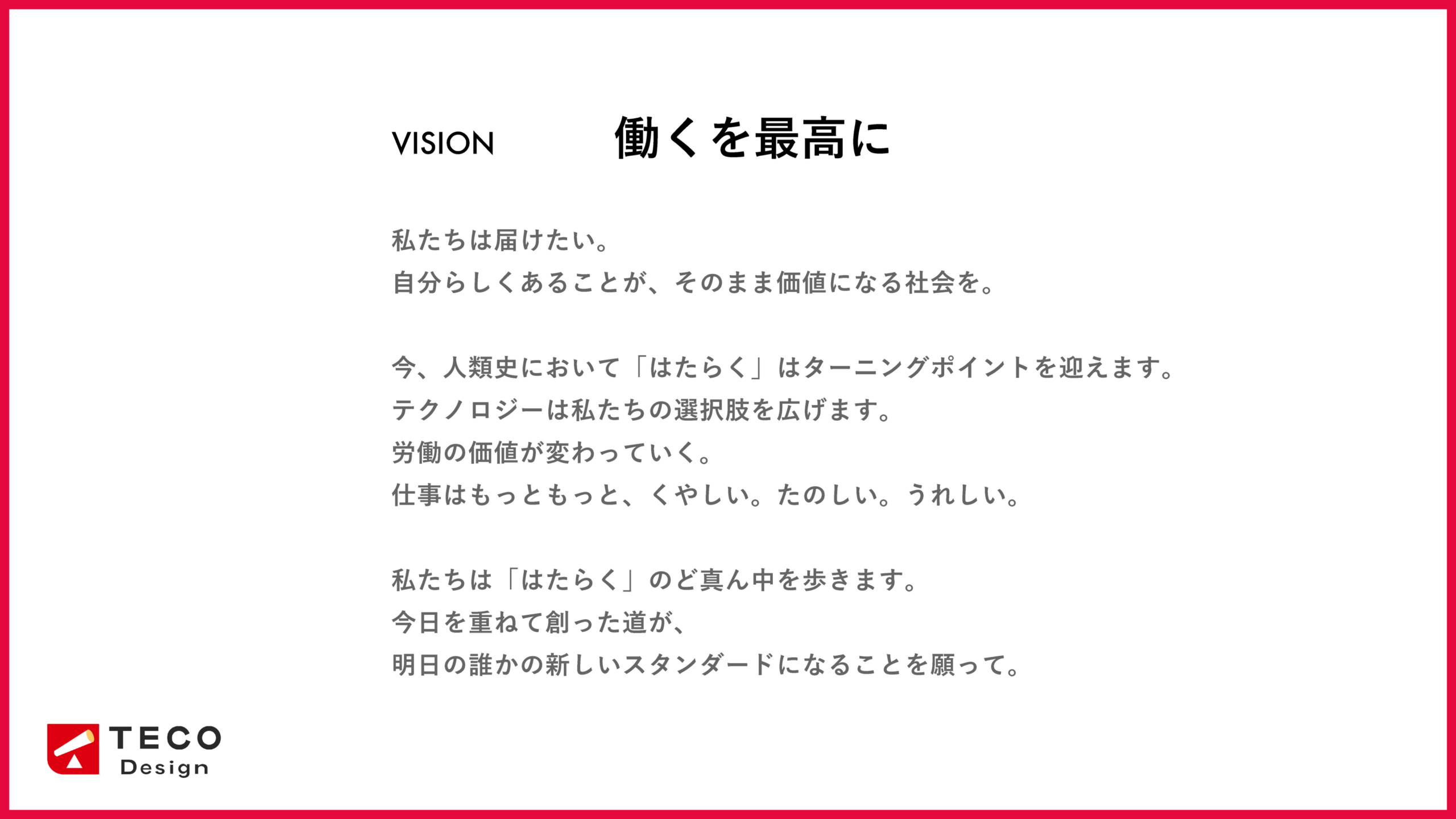 TECO Design、新Vision「働くを最高に」を策定
