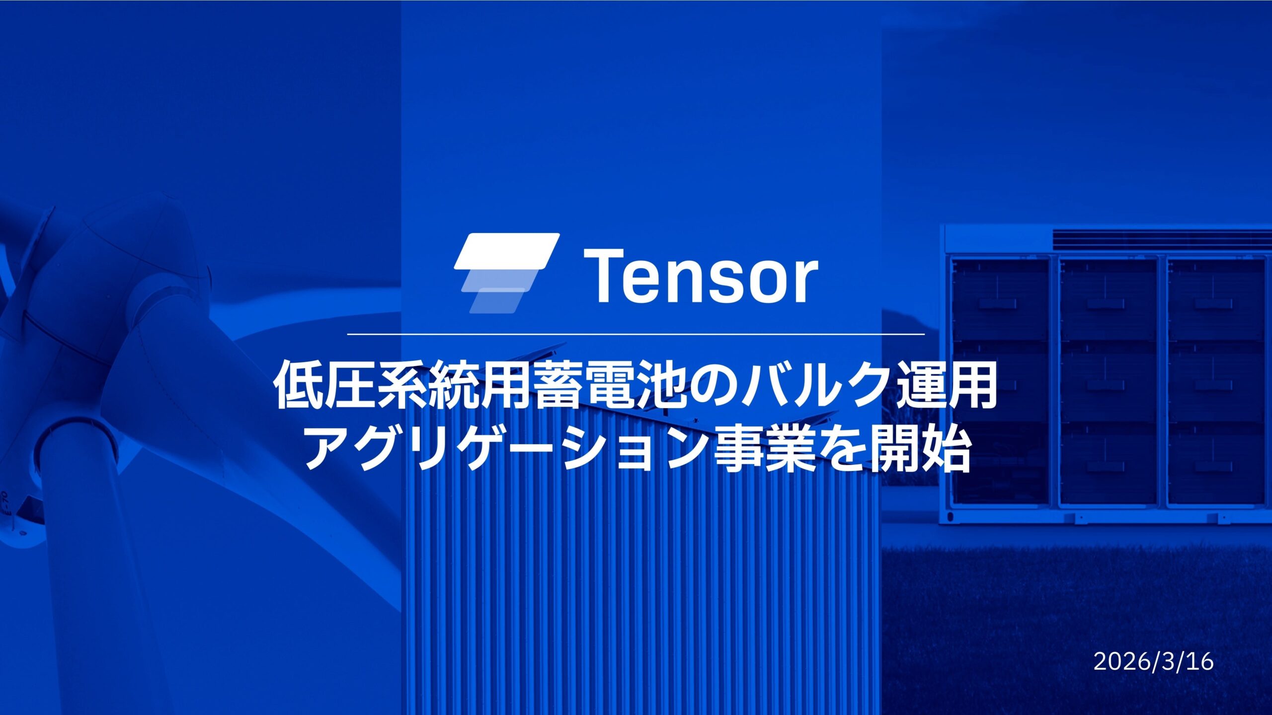 Tensor Energy(福岡市中央区)は2026年3月16日、低圧系統用蓄電池を束ねて運用するバルク運用アグリゲーション事業を始めた。2026年4月に低圧電源・低圧蓄電池が需給調整市場へ参加可能となる制度改正を見据え、UniversのローカルEMSと自社の運用システム「Tensor Cloud」を連携し、分散型電源の収益最大化を支援する。
