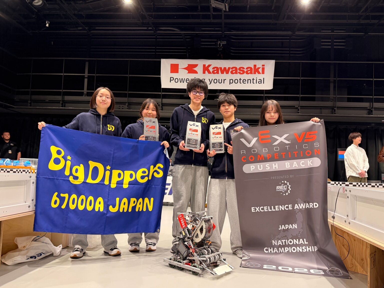 STEAM教育スクール「FIVE by DOHSCHOOL」(運営:三英)のVEX V5 Robotics Competition(V5RC)中高生チーム「Big Dippers」が、2026年1月31日にパルテノン多摩で開かれた国内大会で最優秀賞・トーナメント優勝・スキル優勝の三冠を獲得し、2年連続で日本代表として世界大会出場を決めました。