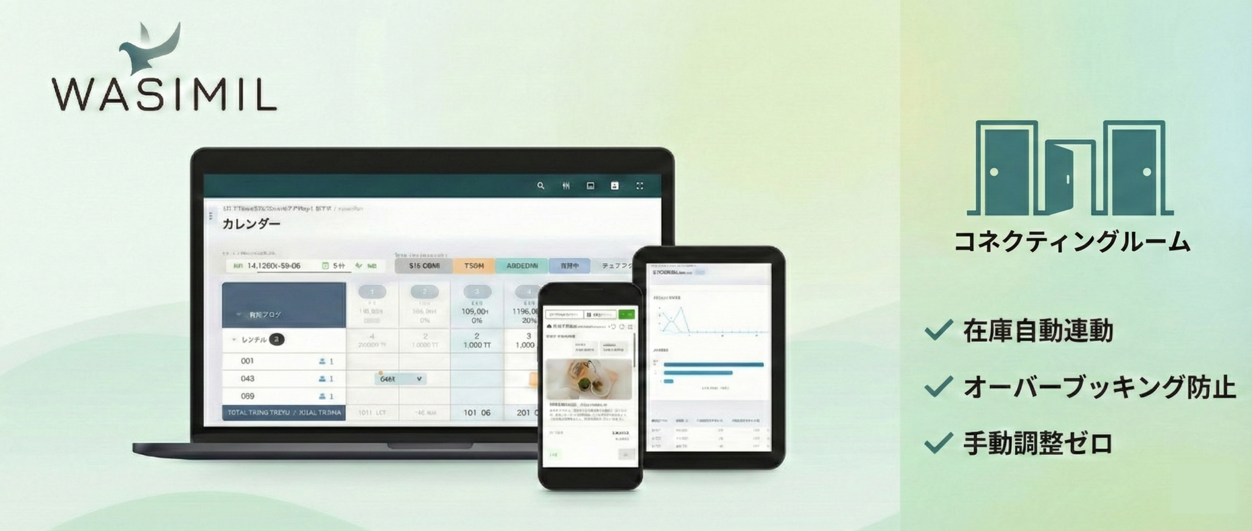 【在庫管理を自動化】ホテルDXシステム『WASIMIL』が「客室リンク機能」を提供開始。一棟貸し・コネクティングルームなど複雑な客室構成の二重予約を防止